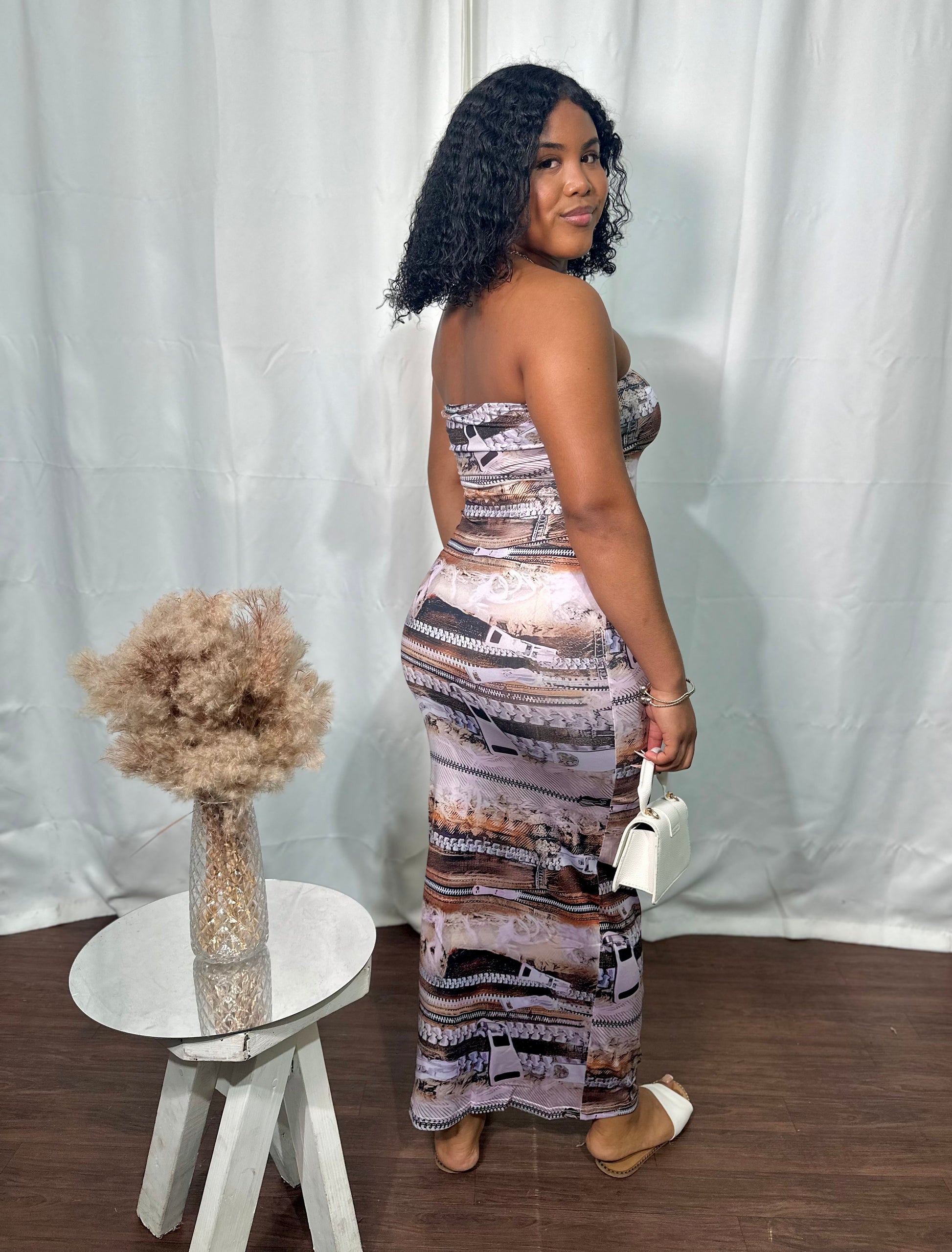 ABSTRACT PRINTED TUBE MAXI DRESS