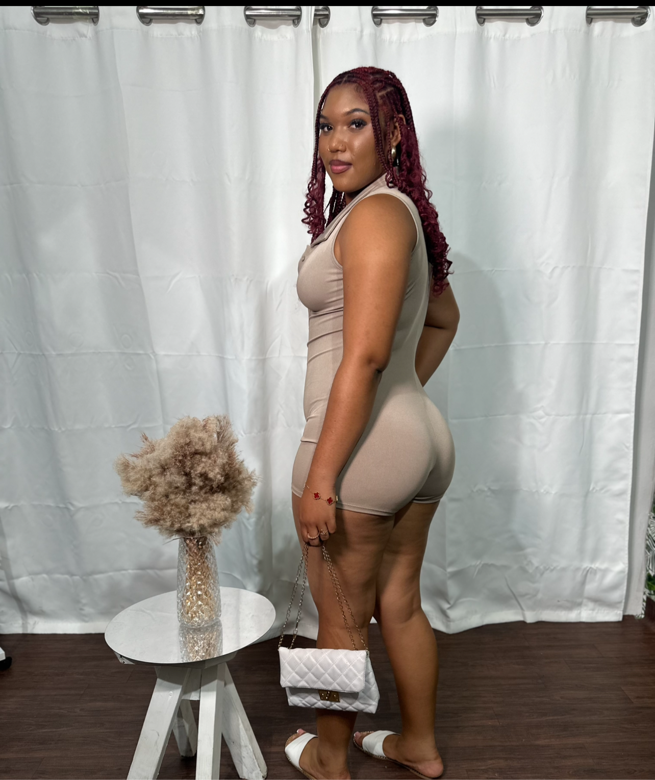 BUTTON-FRONT, RIBBED SLEEVELESS ROMPER