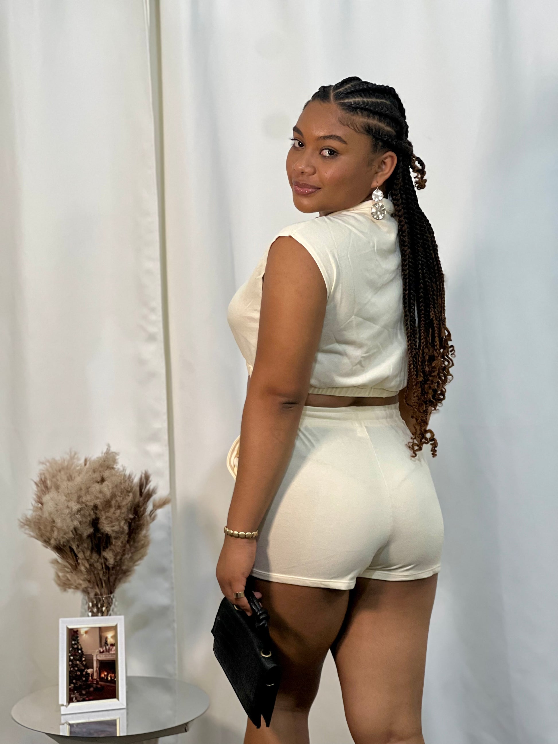 CUT-OFF SLEEVE CROP TOP/ SHORTS SET