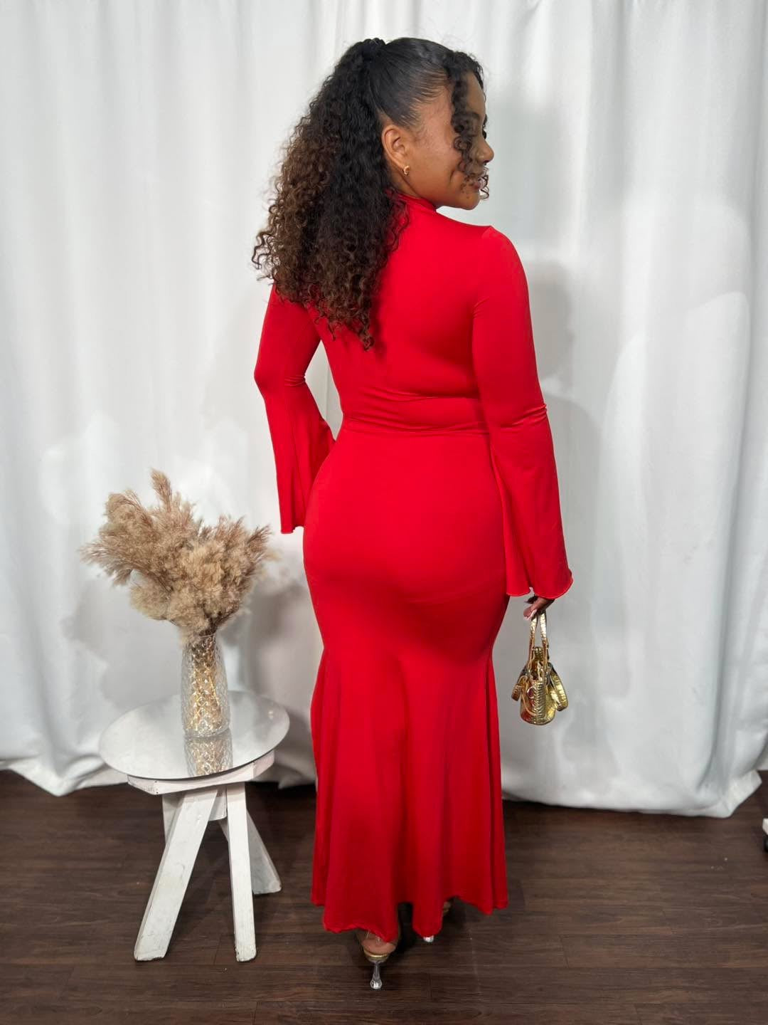 MOCK NECK LONG SLEEVE SLIT MERMAID TAIL MAXI DRESS