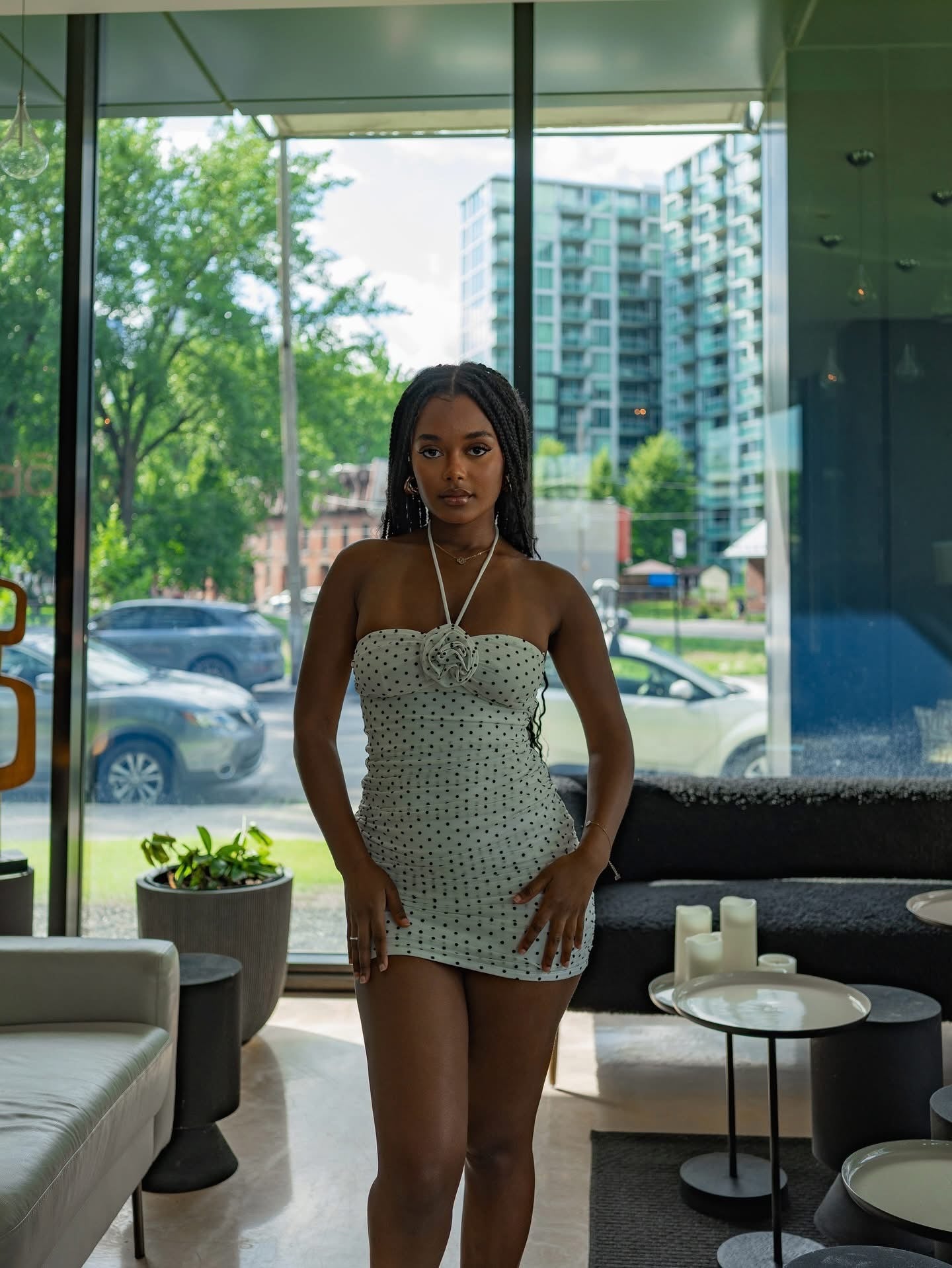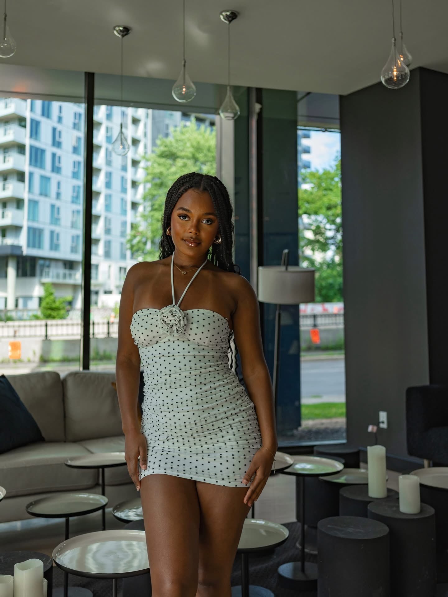POLKA DOT PETAL MINI DRESS