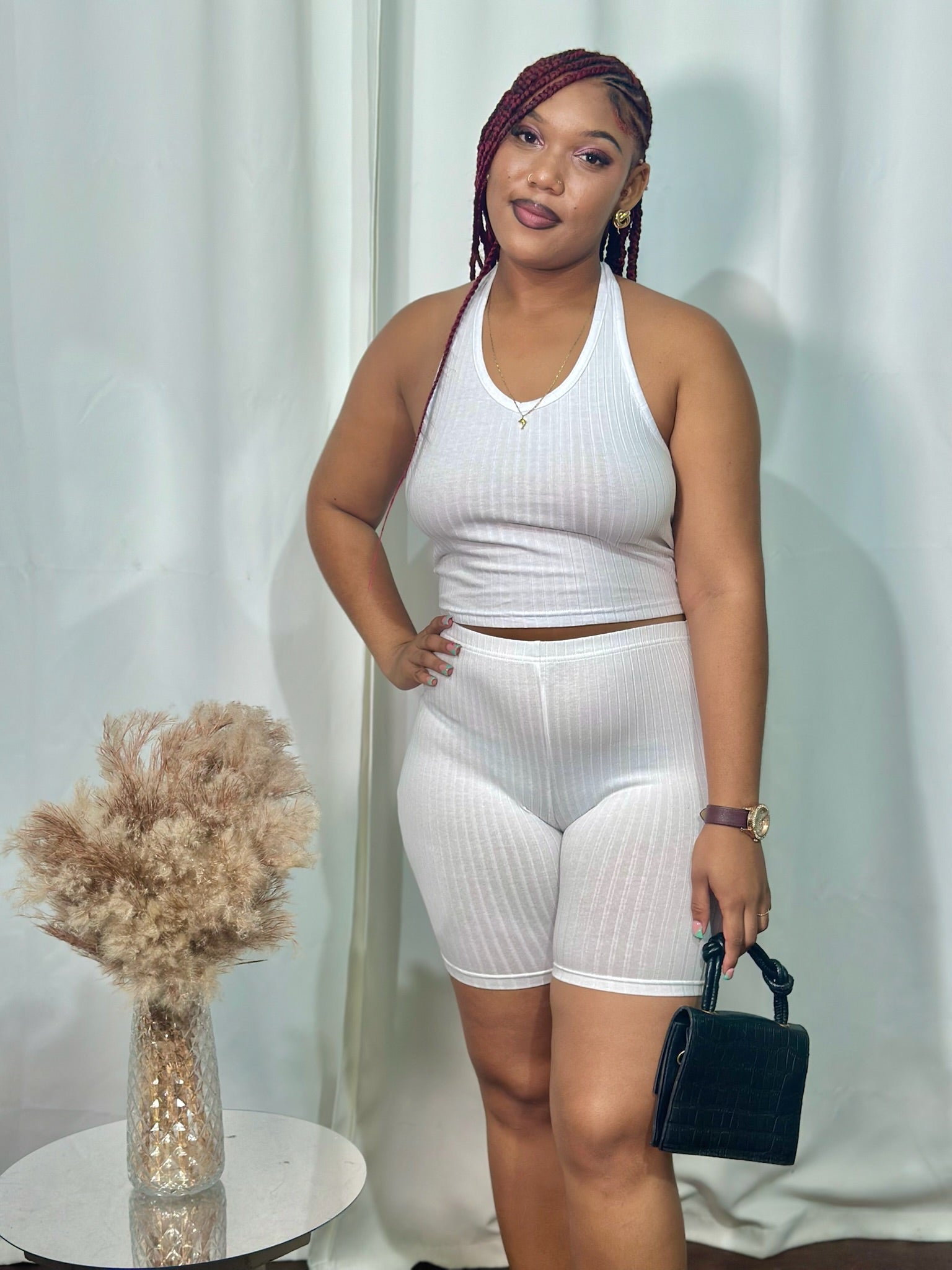 RIBBED HALTER BIKER SHORT SET