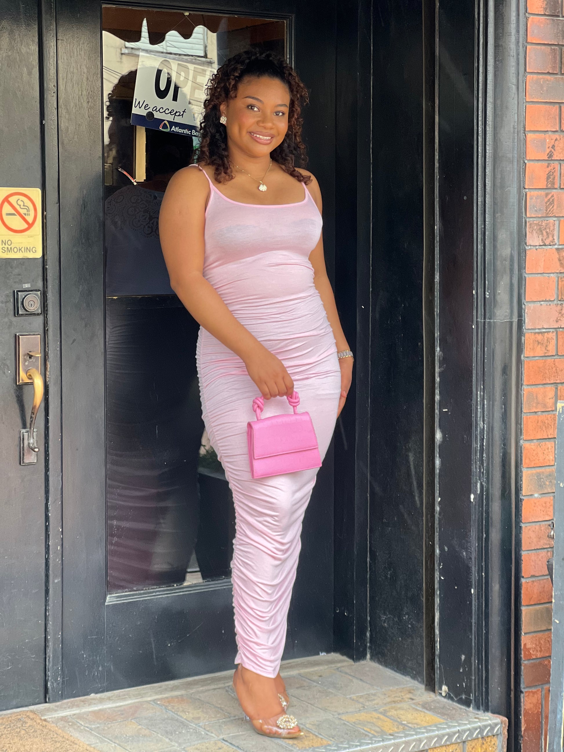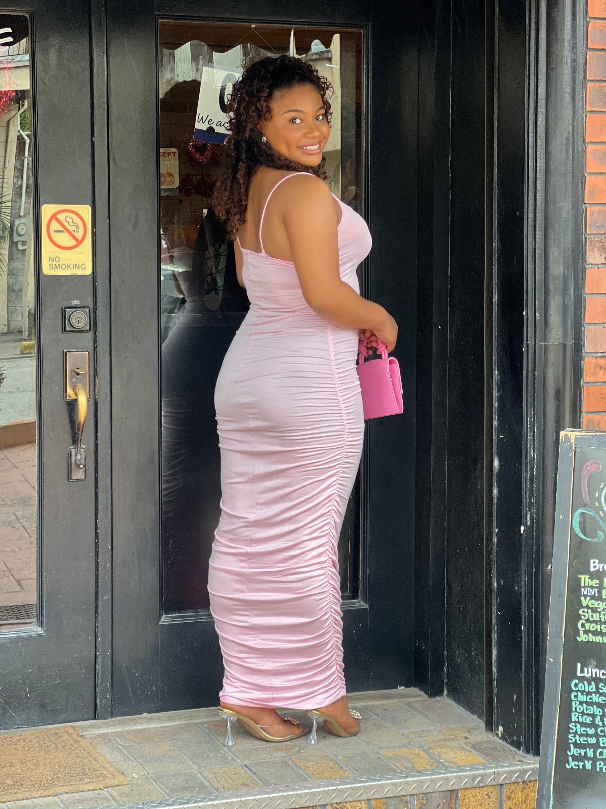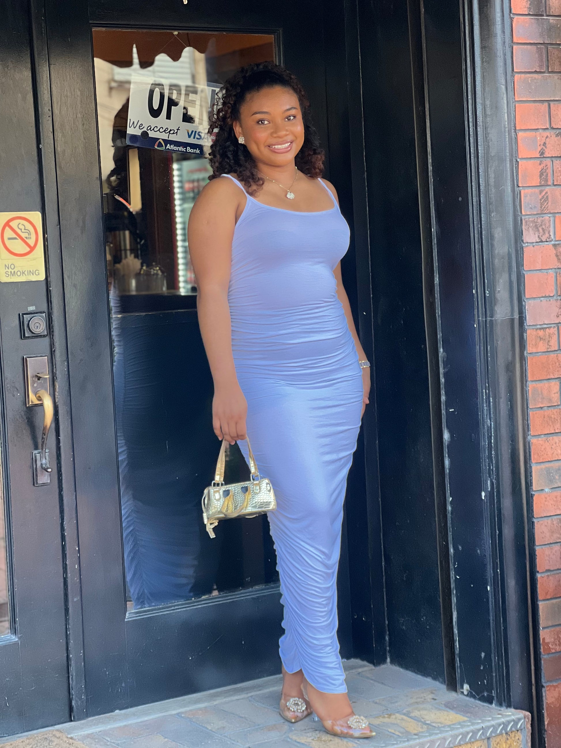 SPAGHETTI STRAP RUCHED MAXI DRESS
